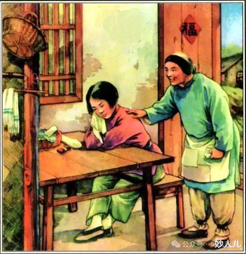 其实这种故事题材,根本不合适正方形画面,而应该代之以常见的横向长方形。当然,由于作者拥有很扎实的绘画基础和色彩搭配的丰富经验,即使构图有这样那样的不足之处,整套作品仍不失为高质量的创作,成为大众年末岁尾喜爱挂在家里的年画。