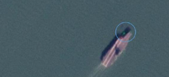 由于民用级别卫星的清晰度有限,对于高速飞行的目标只能分理处红绿蓝三原色的小点,而这个小点很有可能就是正在飞行中的一架舰载机。而且从颜色来看,还很有可能是一架绿色蒙皮的舰载机。这进一步缩小了范围,目前福建舰上进行测试的舰载机中,绿色蒙皮的只有KJ-600预警机。而且从这个绿色小点的位置也可以判断出,很有可能是从三号弹射器弹射出去的,也就是位于斜甲板的弹射器,这又是一个非常重要的点。