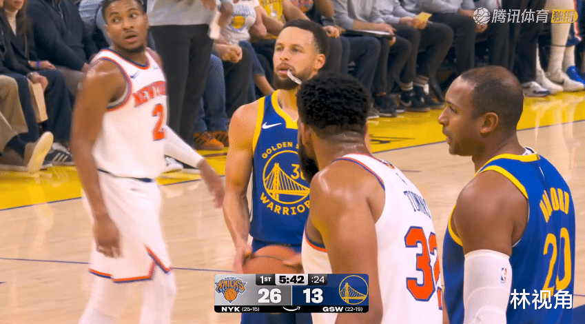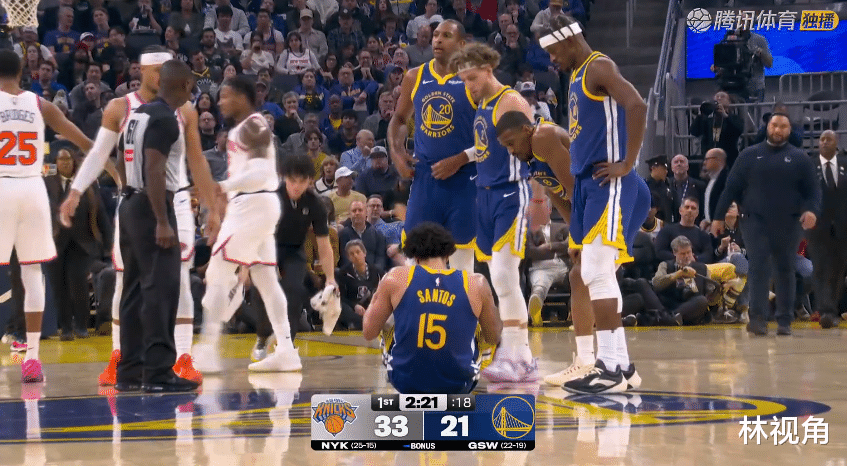 尼克斯三分神准,勇士外线防守有待提高啊,打了7分钟,唐斯领到个人第二犯,提前下场休息。