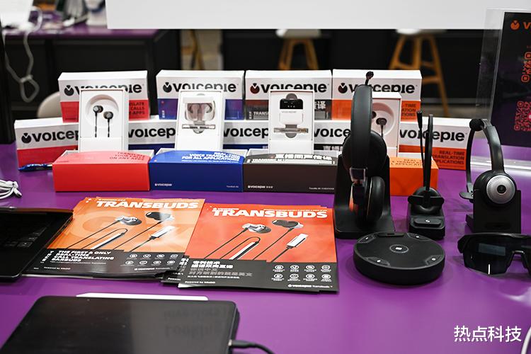 在深圳声临奇境人工智能公司展位上,他们正在展示自家的kikaGo品牌各式各样的AI音频产品。和其他数码产品相比,kikaGo的产品普遍都会多出一个AI模块,而这个模块就是在通话中实现同声传译服务所必不可少的部件。