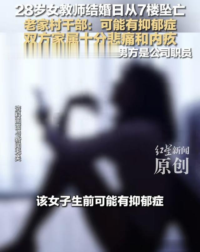 。悲剧发生后,红星新闻记者从多方了解到,这位教师老家在农村,家境殷实,并非外界猜测的经济困顿。村干部证实她生前患有抑郁症,并澄清了网络上的不实传言。令人唏嘘的是,男女双方家庭在巨大的悲痛中并未产生纠纷,村干部上门慰问时,两家人都表示无需调解。新郎的身份是一家公司职员,能被女方父母选中,想必也是条件优越。