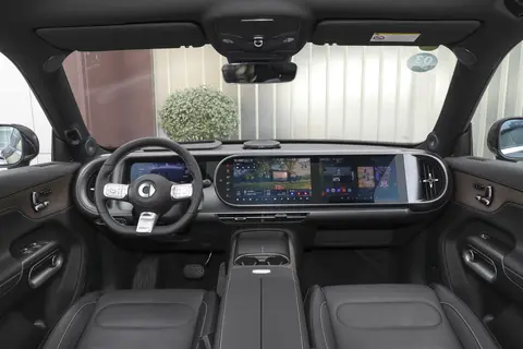 尺寸数据是这款车的一大亮点:4705/1920/1710毫米的车身尺寸,2900毫米的轴距,相比smart以往车型有了显著提升,但设计师通过“紧凑于外、宽适于内”的巧思,实现了高达85%的空间得房率。这种设计的实际体验尤为明显——前排头部空间达1020毫米,即使身高1.85米的乘客坐进去,头顶仍有一拳余量;后排腿部空间突破900毫米,三位成年人同时乘坐也不会感到拥挤,孩子在后排玩耍时能自由伸展。后备箱常规容积为520升,放倒后排座椅后可扩展至1750升,周末采购的生活用品、露营装备,或是长途旅行的行李箱,都能轻松容纳,底部还设有隐藏式储物格,用来存放充电线、急救包等小物件,让车内保持整洁。