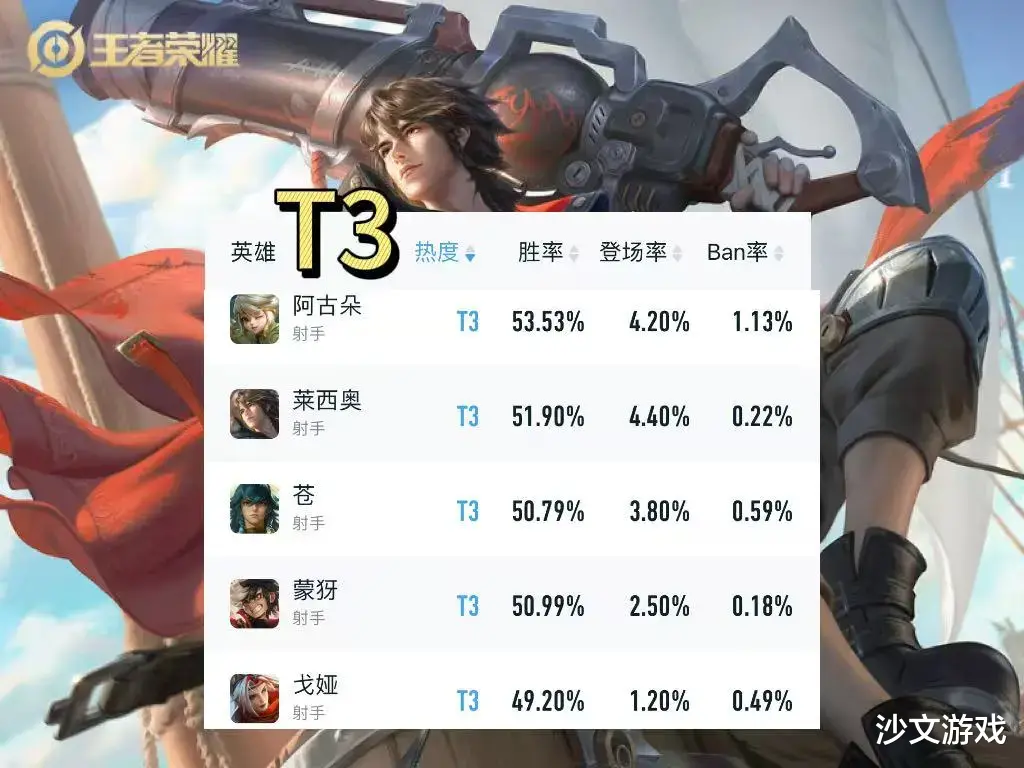 莱西奥当前版本强度还不错,上个赛季热度很高,但是这个赛季热度突然就从T1降到T3了;苍和莱西奥也是一样,苍上个赛季也是热度T0的射手,但是这个赛季热度也是降到了T3。
