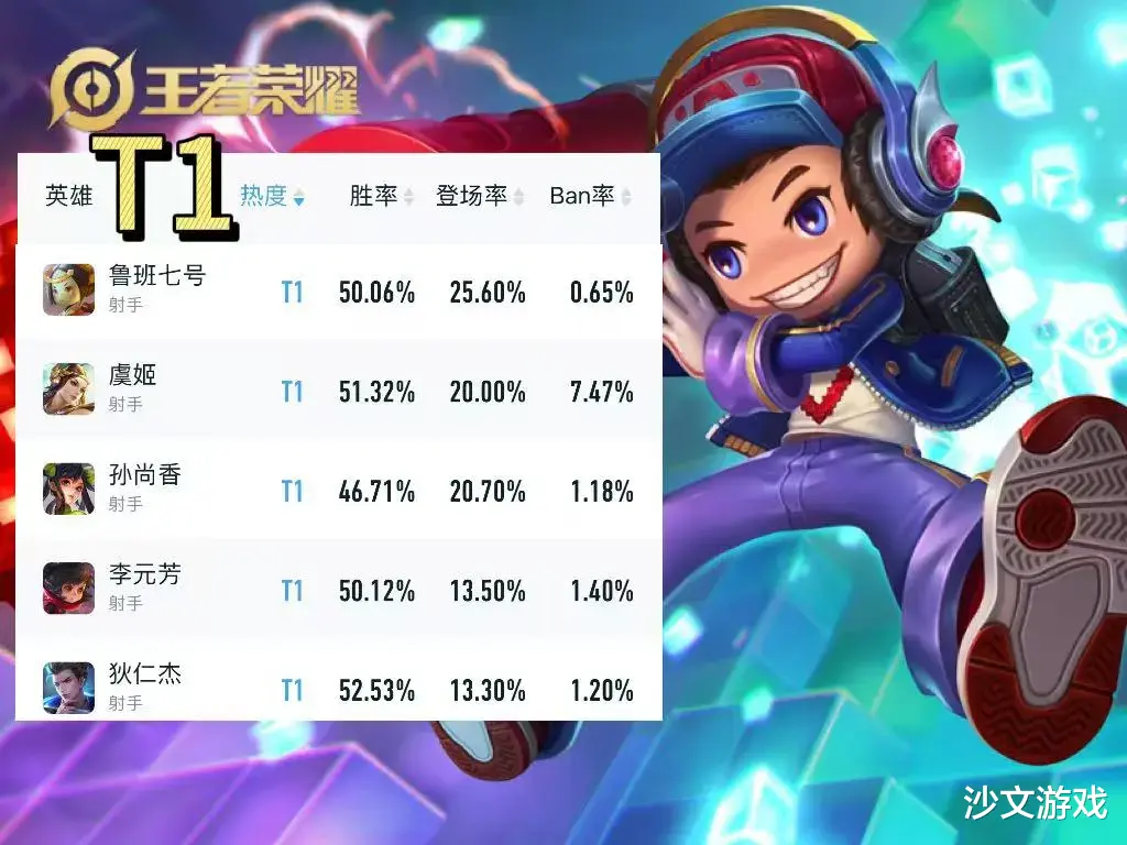 排在发育路热度榜T1的英雄有鲁班七号、虞姬、孙尚香、李元芳、狄仁杰。