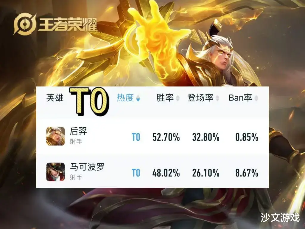 后羿热度第一的同时,拥有所有射手最高的52.7%胜率,而排名第二热度的马可波罗只有48.02%的胜率。现在的版本排位中后羿基本是非ban必选射手,前、中、后期都非常的强势。
