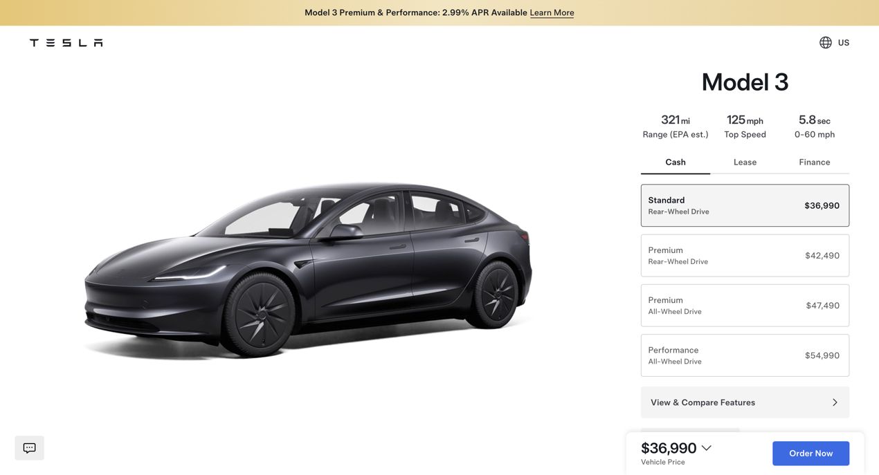 回顾海外版Model 3 Standard定价36,990美元,折合人民币25.8万左右。或许看到这价格,大家会说这算哪门子的“炸弹”?