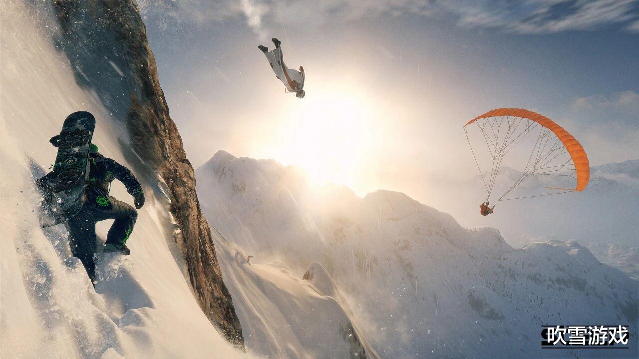 《Steep™》提供了滑雪、单板滑雪、翼装飞行和滑翔伞四大运动项目。每种运动都拥有截然不同的操作手感和核心乐趣。