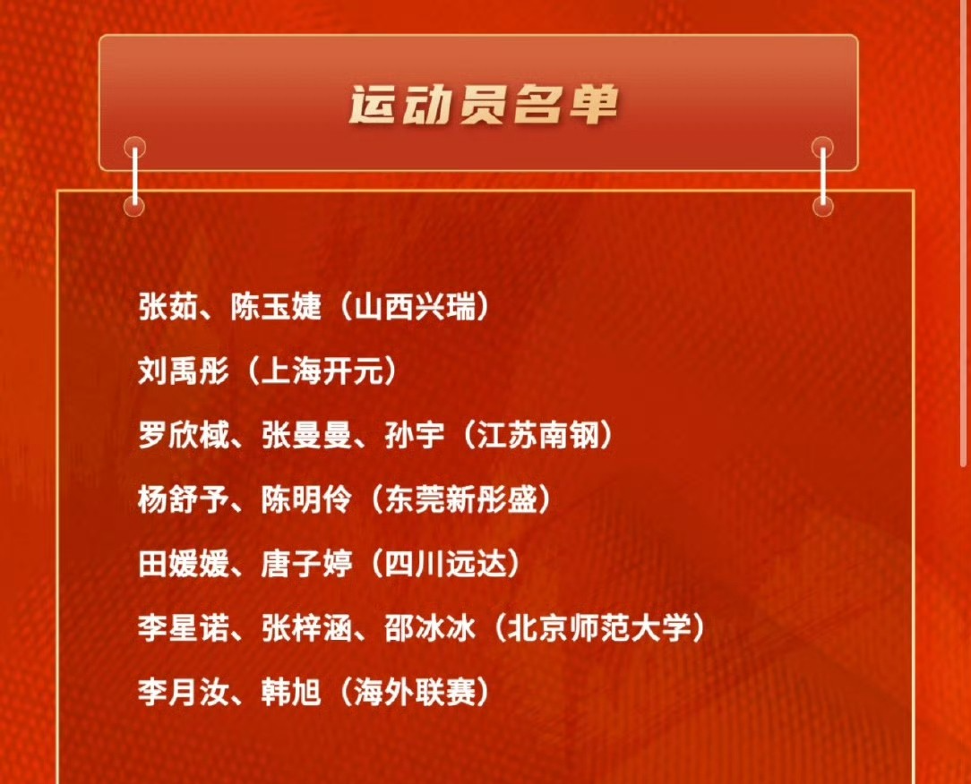 先来看运动员具体名单,山西女篮张茹、陈玉婕,张茹本赛季是不用在联赛打球了,刚刚结束了特训营,现在又进入了训练营,山西女篮估计对此也是很无奈。上海女篮刘禹彤,这是刘禹彤首次入选女篮国家队集训名单,希望大宝贝能够凭借自己的努力,打动宫鲁鸣指导。