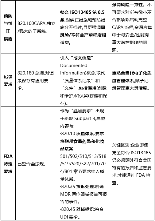 FDA医疗器械质量体系新旧法规关键变化·整理分析如下↘