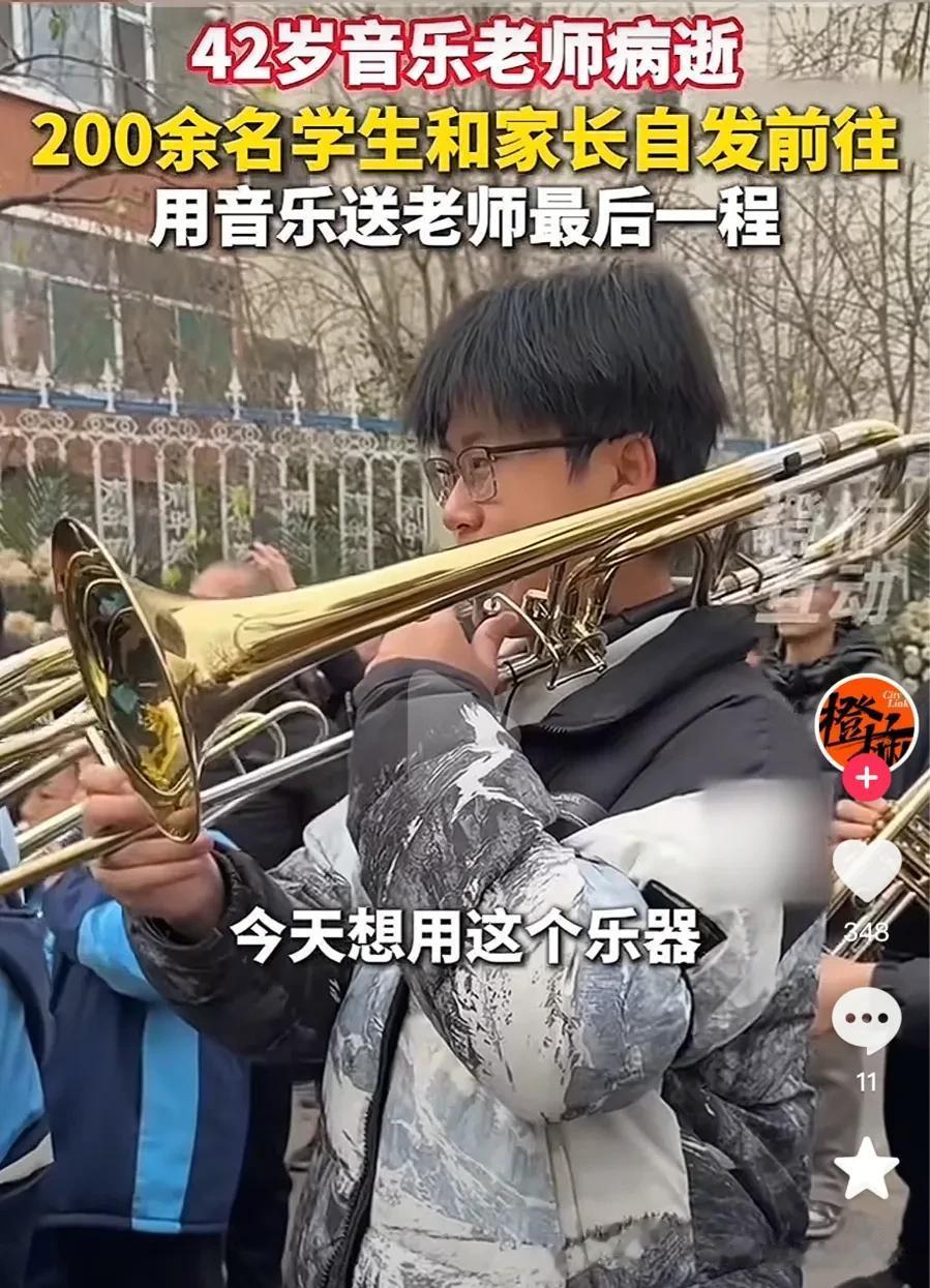 那200多名学生自发组成的乐队,在寒风中响起的送别曲,是对一个老师最好的告慰。