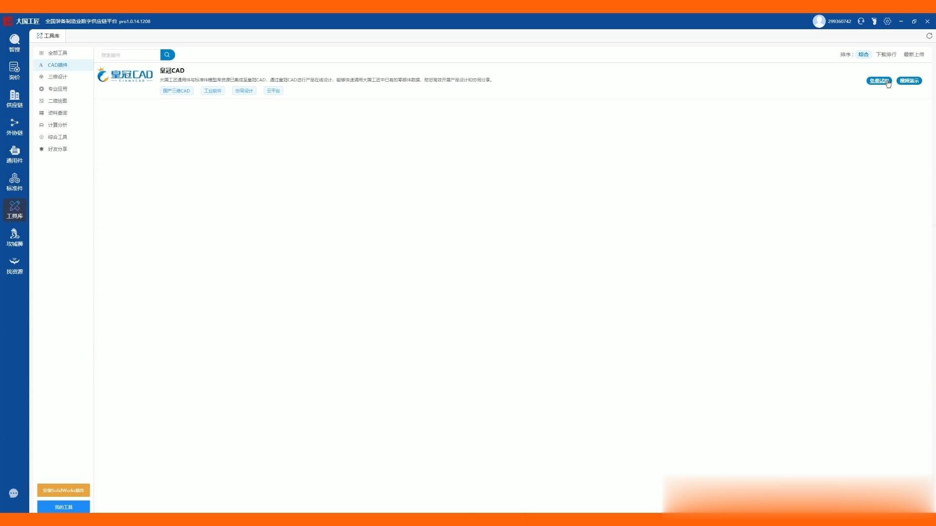 这也是国产生态共建的好苗头——要知道以前这类供应链平台,大多依附于SolidWorks,现在纷纷站到国产皇冠CAD这边了,看来能拿到航空航天、轨道交通、船舶、石化等高端制造客户的订单,还是有两把刷子的。