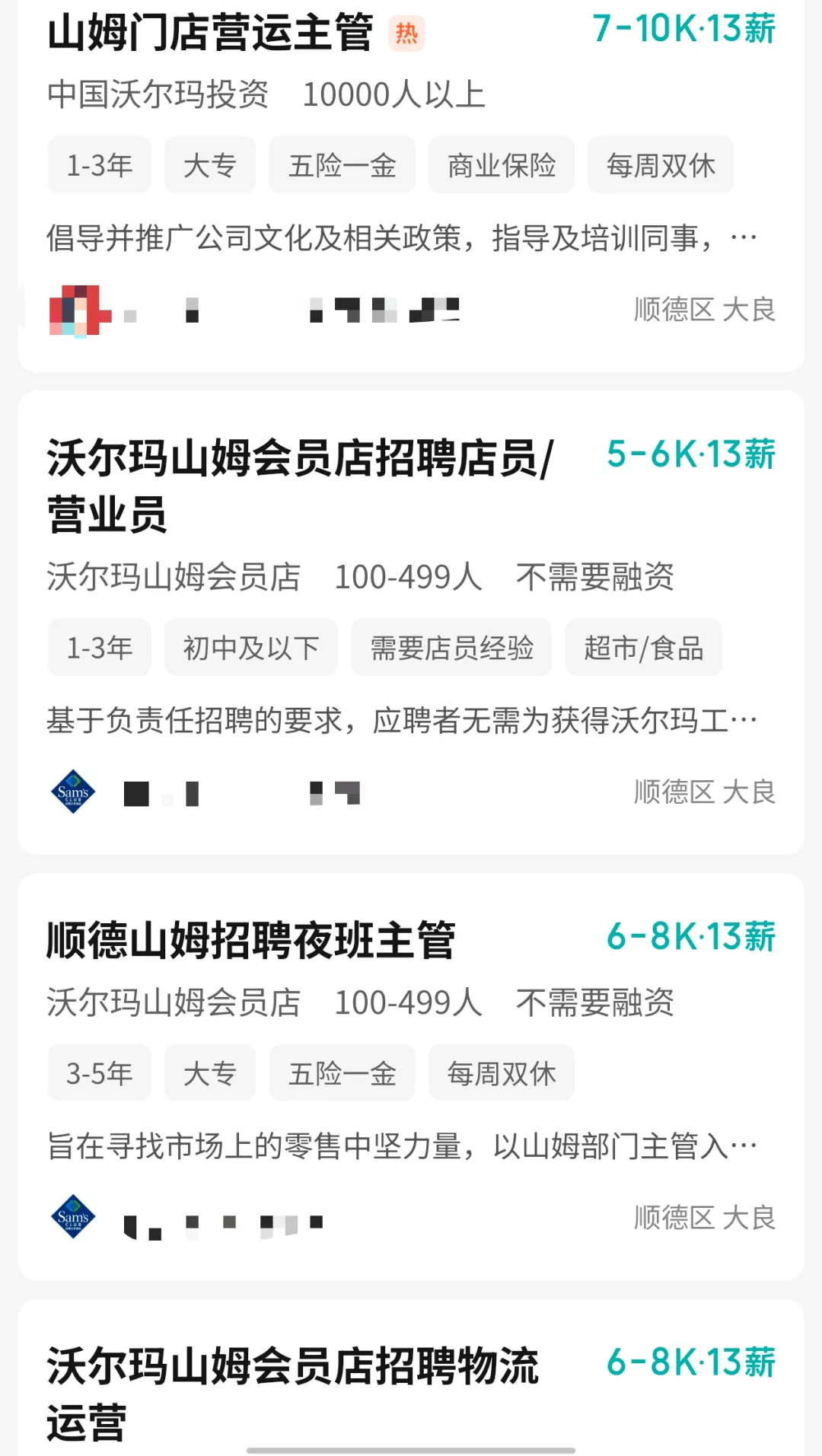 此外,楼市君也在boss上发现顺德山姆的招聘信息,薪资在5k-10k不等,这个待遇,在同类型岗位中是还蛮吃香的。