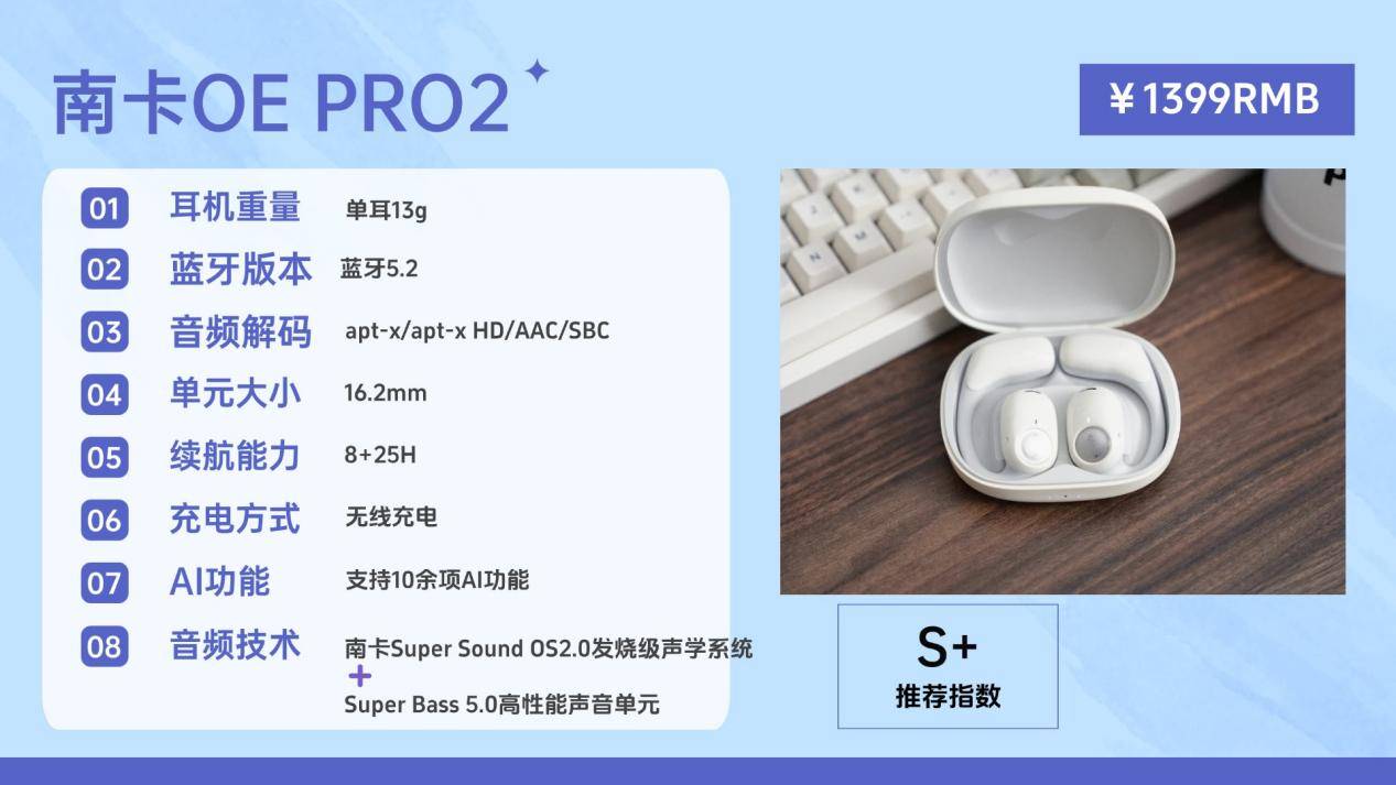 在开放式耳机领域,南卡是最早布局且持续投入最深的品牌之一,专注开放声学研发已超过13年,以卓越的产品实力成为行业标杆。其旗舰产品OE Pro2凭借AI智能系统、零压佩戴体验、顶级声学配置及成熟调校能力,一直稳居开放式耳机高端阵营。它无需依赖大规模广告或明星带货,而是通过口碑在HiFi发烧友、专业评测人及业内人士中广泛传播,被认为是国产开放式耳机中能够与BOSE、森海塞尔等国际高端品牌比肩的代表作。