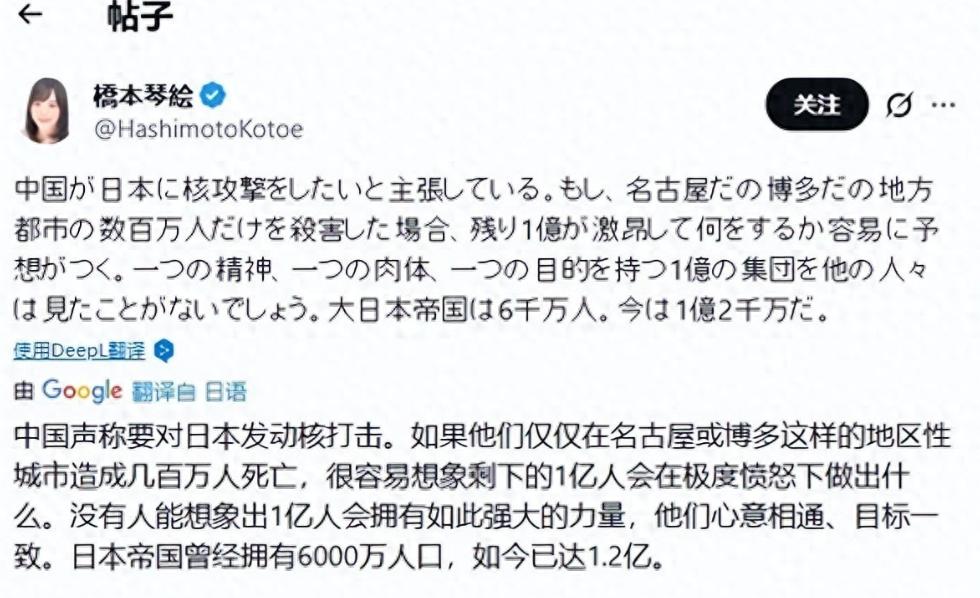 这一言论迅速在日本右翼圈子里传播开来,不少右倾账号更是将其推至主页,引发广泛关注。