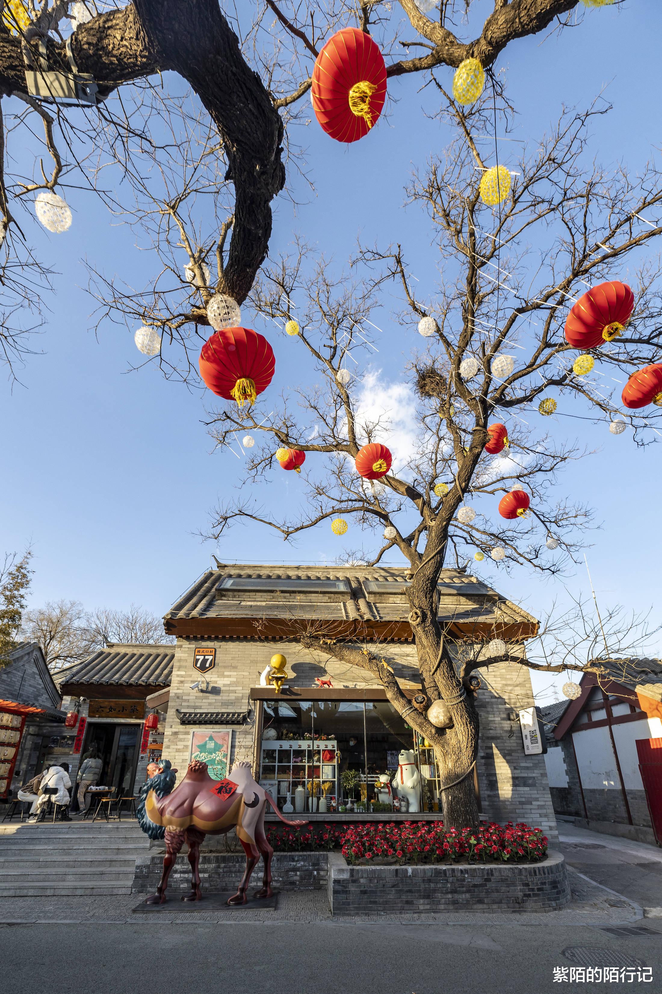 走在模式口大街上,虽然春节已过,但树梢上依然张灯结彩。这里随处可见骆驼的雕塑——“驼铃古道”,自然要有骆驼的元素。除此之外,在街头巷尾,还能看到一些猫咪雕塑和卡通涂鸦,和街边的美食小店、书店、咖啡馆、西餐厅混搭在在一起,还真是一副文艺街区的模样。