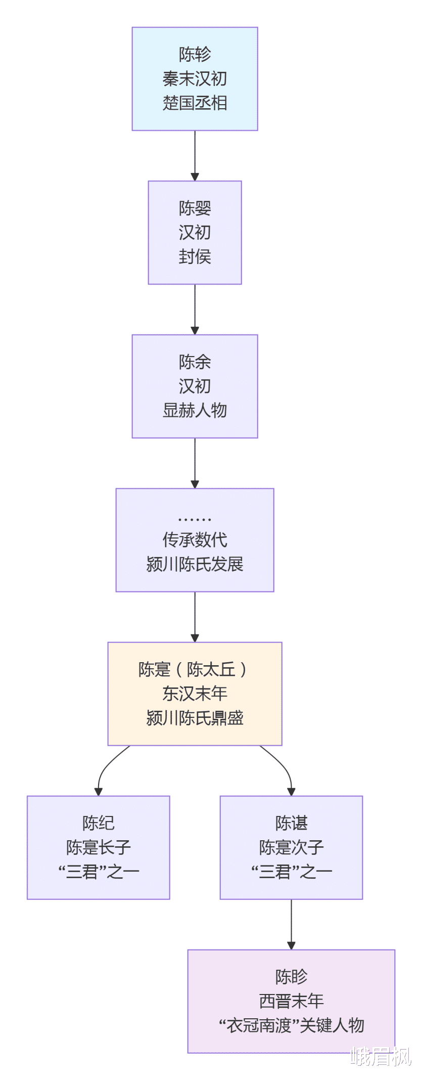 以陈寔后裔陈眕为代表的颍川陈氏家族也随晋皇室南迁,