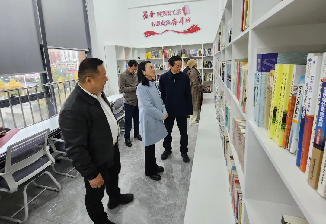随后,考察组一行走进园区四楼的职工书屋。这个集阅读学习、交流互动于一体的温馨空间,凭借丰富的藏书储备、舒适的阅读环境与浓郁的文化氛围,给考察组留下深刻印象。阜阳人力资源服务产业园联合工会副主席李伟介绍,职工书屋不仅是园区职工与入驻企业员工“充电赋能”的文化驿站,更常态化开展技能分享、读书沙龙等特色活动,全力营造终身学习氛围,助力人才综合素质全面提升。
