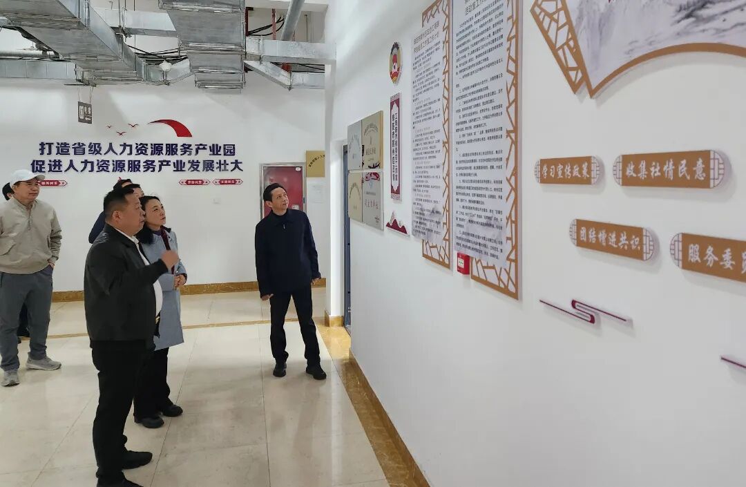 位于园区三楼的政协界别委员工作室,是颍州区政协创新履职模式的重要实践载体。负责人郭琼向考察组系统介绍工作室的运作机制与成效亮点,他表示,将工作室直接落地人力资源产业园,是政协延伸履职触角、贴近产业发展的关键举措。依托产业园与企业、人才紧密联结的天然优势,工作室已成为委员扎根产业、倾听企声、汇集民意的前沿阵地,让政协服务精准对接产业发展需求。