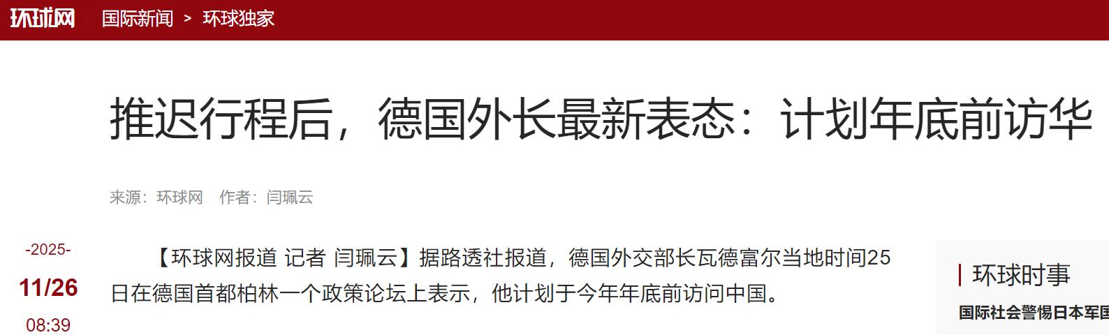 默茨原计划今年底访华,但为了把德外长访华插进去,又改为明年初。
