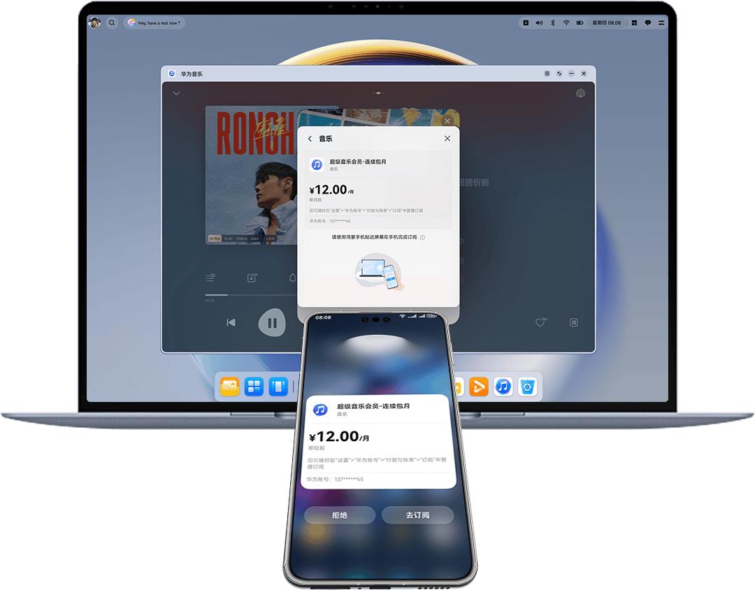 更酷的是,“碰一碰”能跨设备支付的黑科技。比如在华为电脑上买WPS的会员,只需拿手机碰一下屏幕,支付任务秒转到手机,确认一下就搞定。