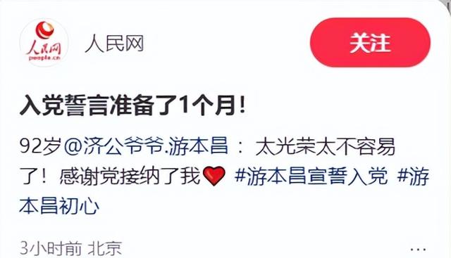 而成为一名党员,是他的梦想,也是他的信仰。看他念誓词时那认真劲儿、每个字都清清楚楚,这份真心诚意,真让人感动,难怪连人民网都为他点赞叫好。