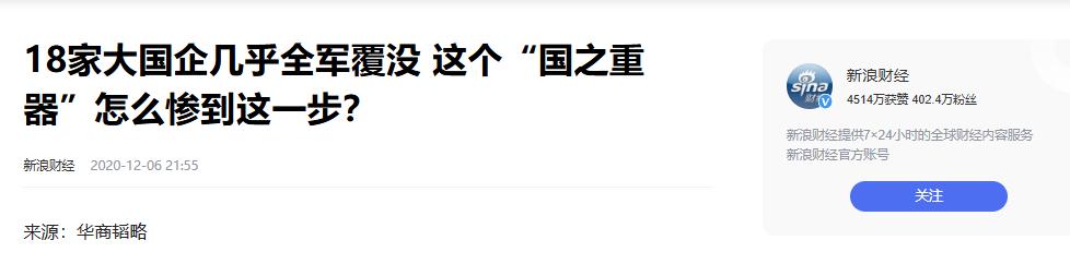 参考资料:1、18家大国企几乎全军覆没 这个“国之重器”怎么惨到这一步? 新浪财经 2020年12月发布
