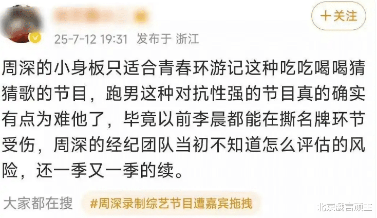 而跑男这种对抗性强的节目真的确实有点难为他了,毕竟李晨之前都能在‘撕名牌’环节受伤,周深的经纪团队当初不知道怎么评估的风险,还一季一季的续。