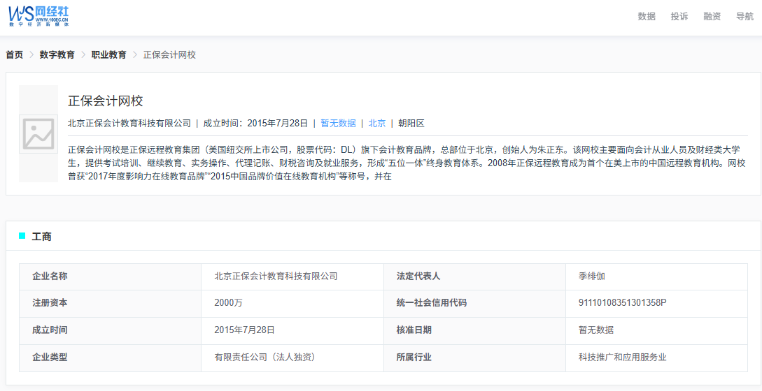 网经社企业库显示,“正保会计网校”隶属于北京正保会计教育科技有限公司,法定代表人季绯伽。