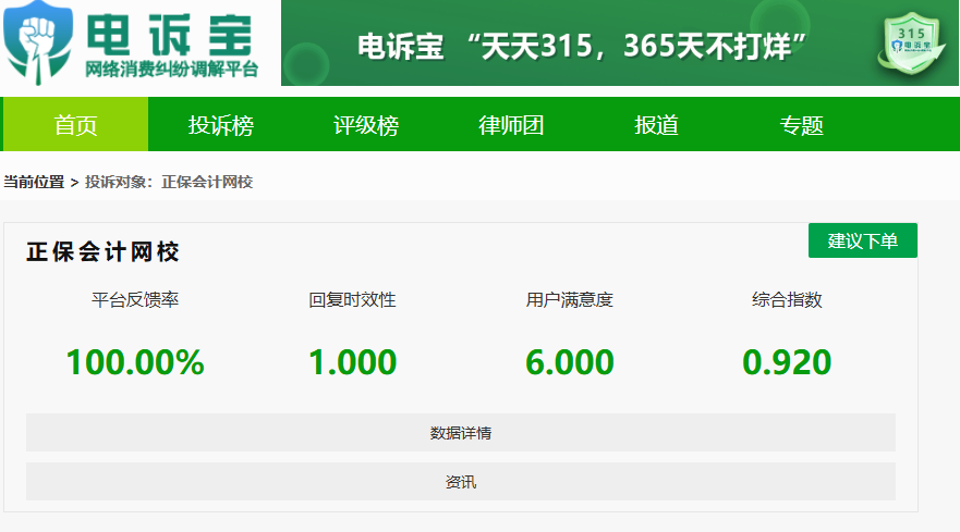 接到用户投诉后,平台已第一时间将案件移交网校相关工作人员督办处理。对此,正保会计网校暂未回应。