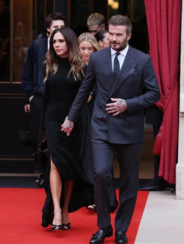 由于是贝嫂获得勋章,二儿子带着女友、三儿子也带着女友到场祝贺老母亲,还有贝克汉姆也给足了老婆面子,面对镜头时牵着贝嫂的手,然而有记者提到大儿子布鲁克林时,贝嫂就甩开了贝克汉姆的手,看起来很生气的样子。