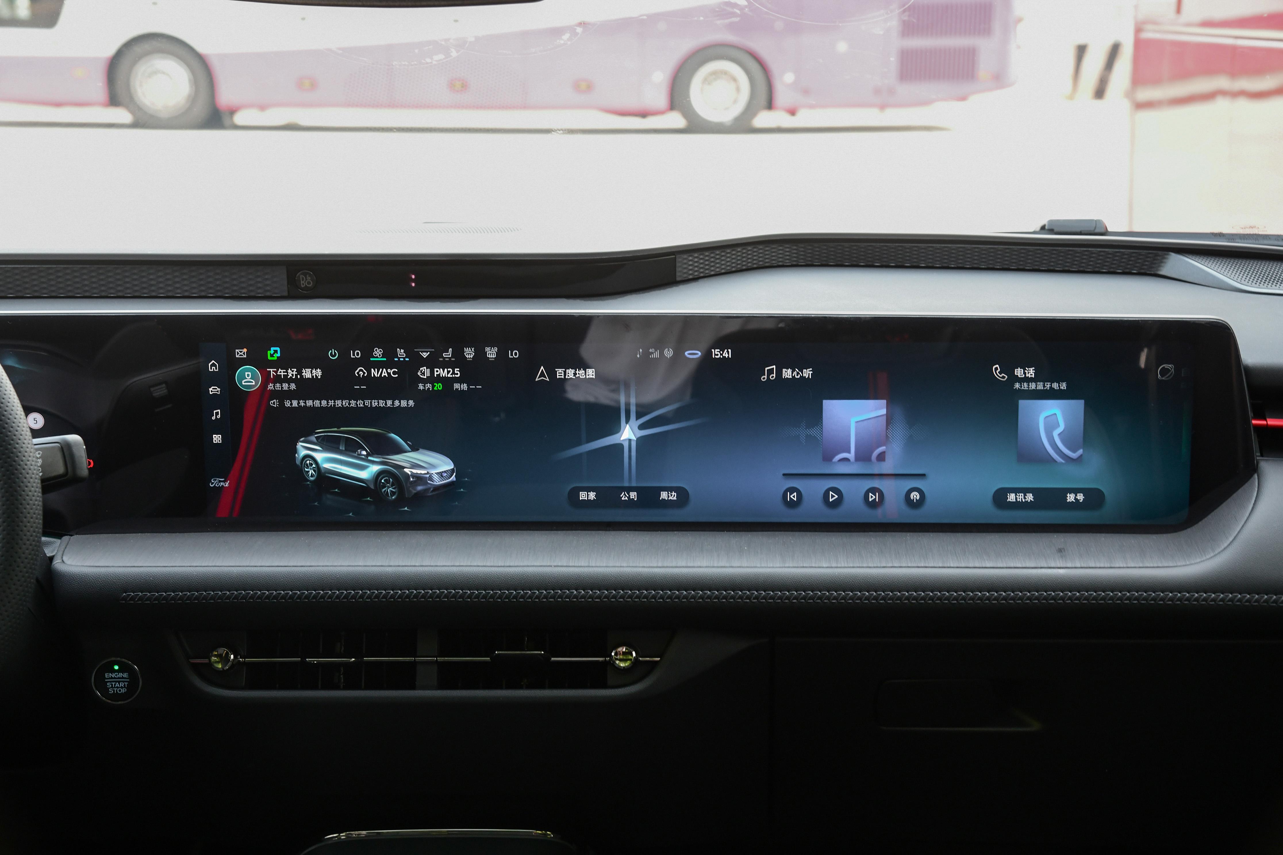 值得一提的是,福特蒙迪欧这款车一改传统合资品牌的车内屏幕设计,直接是在车内加入了一个贯穿式的大连屏,一眼看去很显高档。同时该屏幕由12.3英寸的全液晶彩色仪表+27英寸的4K分辨率的中控屏组成,屏幕画面显示清晰且细腻,没有所谓的屏幕粗糙感和颗粒感。但在车机系统该车搭载了SYNC+2.0车载智能系统,并且为了更好满足当下的用车需求,该车的的智能互联功能上表现也较为全面,像AR实景导航、蓝牙车载电话、车联网、4G网络、OTA升级、面部识别等功能都进行了配置,但在语音控制系统上,整体的表现还是有较大提升空间。