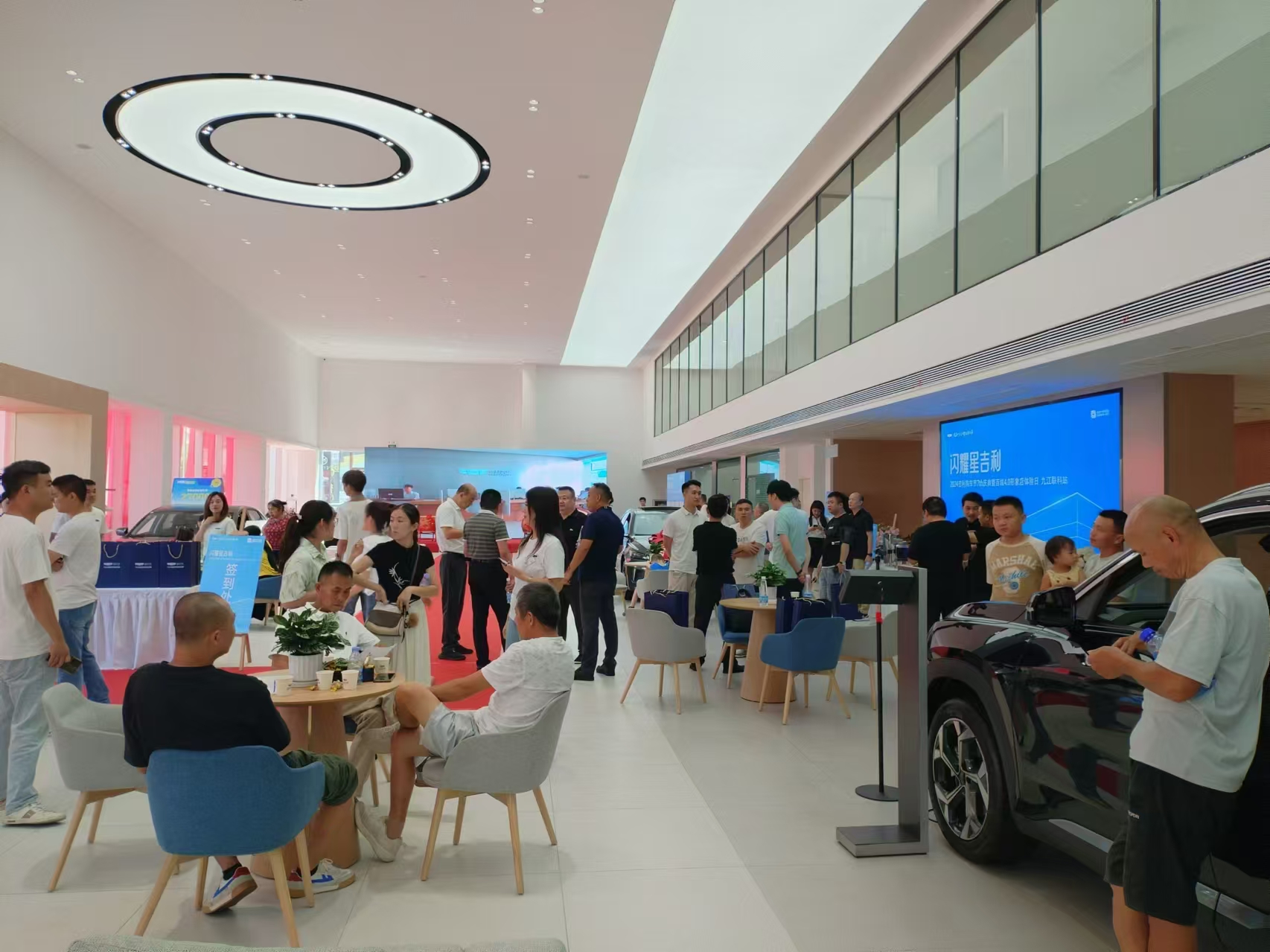 重装后的九江联科吉利汽车4.0形象旗舰店采用了最新的设计理念,将科技感与现代感完美融合。店内布局更加人性化,顾客可以更加直观地体验到吉利汽车的创新技术和卓越品质。全新的展示区、体验区和洽谈区,为顾客提供了一个舒适、便捷的购车环境。