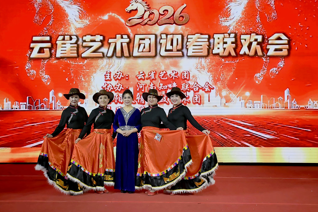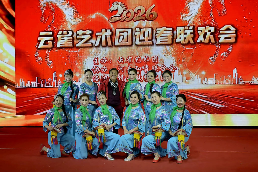 金蛇狂舞曲未终,已闻神都马嘶鸣。回顾即将过去的2025年,云雀全体团员同心协力,完成了50多场舞台演出的艺术实践。在这个过程中,陆续推出多个我团原创作品。我们边排边演,以演带练,不断听取专业人士和观众朋友们的批评建议,经过“千锤百炼”。2025年初我团原创作品《红楼大观牡丹艳》荣登洛阳电视台首届老年春晚,并荣获最佳人气奖第一名。在洛阳电视台舞蹈大赛中戏韵联舞《女驸马》荣获“最佳节目奖”,在洛阳电视台《重阳喜乐汇》中上演的黄梅剧秀《鹊桥会》以及近期刚刚创作完成的:河洛小唱《山川乡韵黄水情》等等,均为我团原创节目。从对传统剧的喜爱、到如今的精耕细作。经过我团创作人员无数次的精雕细琢和队员们的反复排练,最终取得累累硕果,并因此被洛阳晚报整版报道表彰。所谓:“老有所乐”、“老有所为”,云雀艺术团正在为此目标履行自己的使命。
