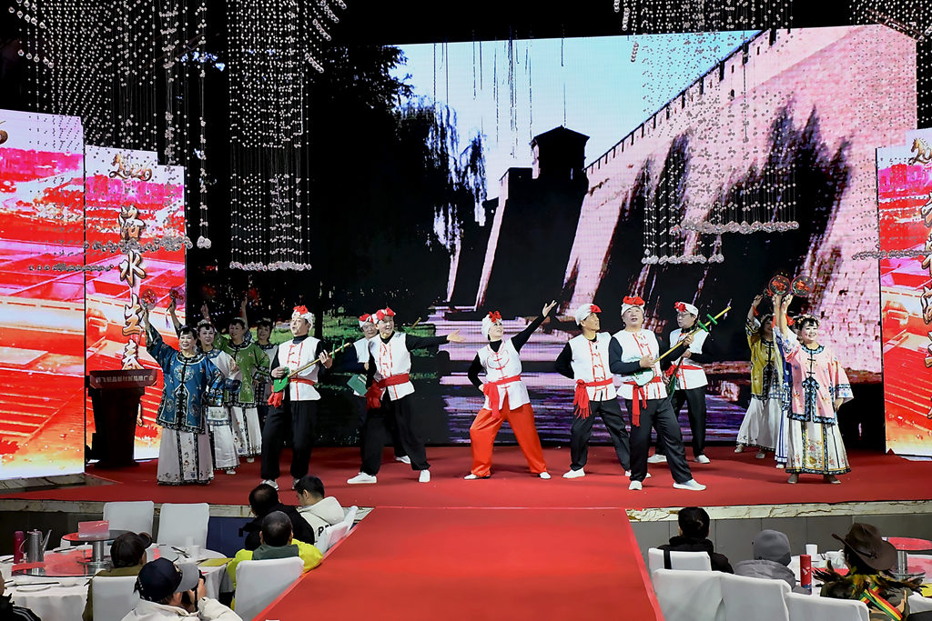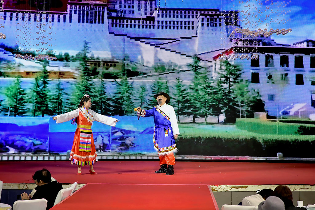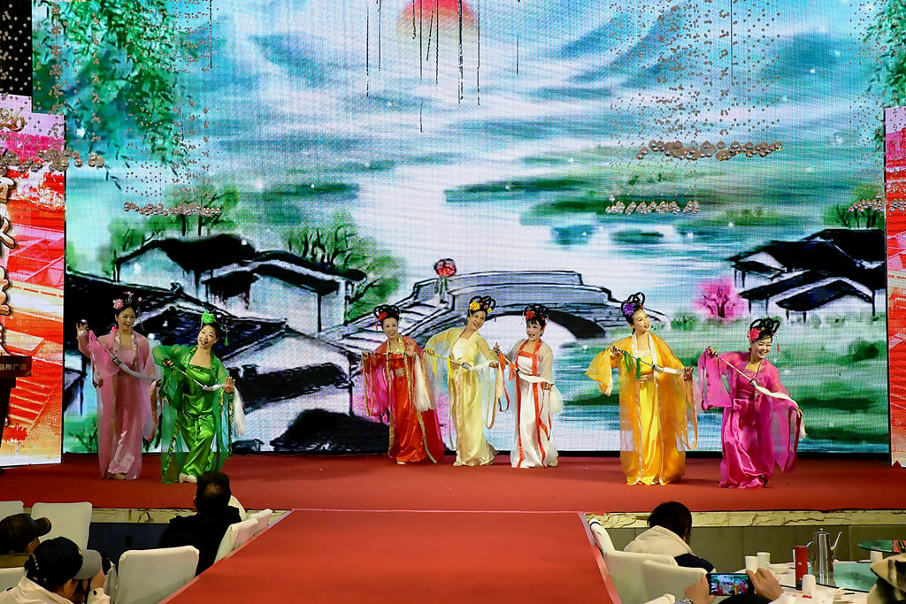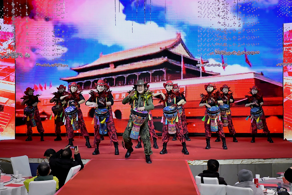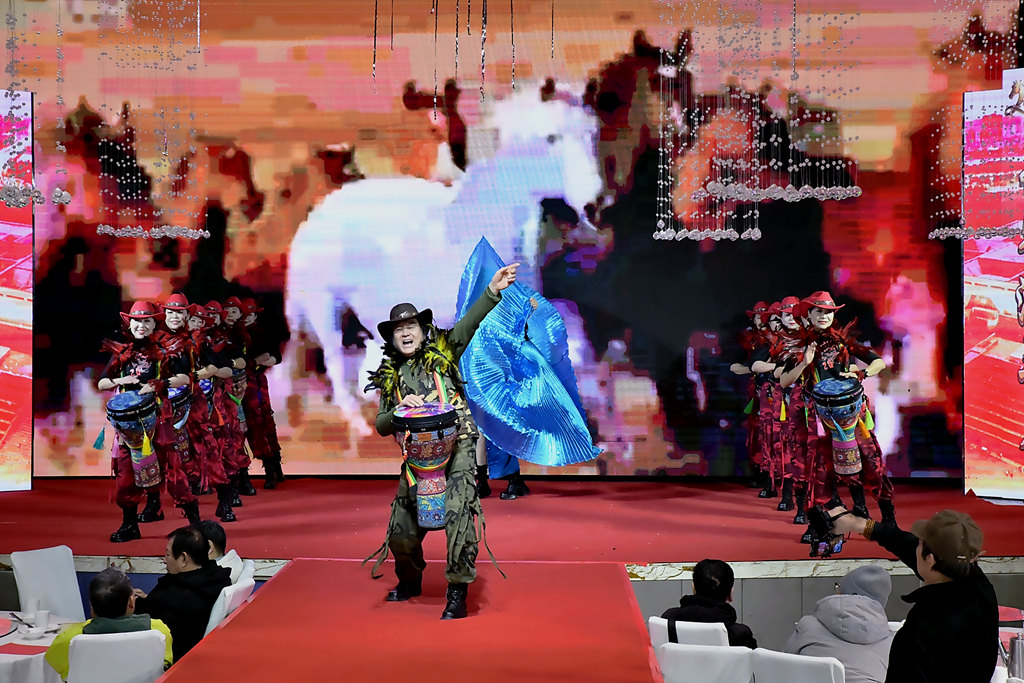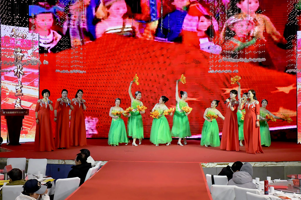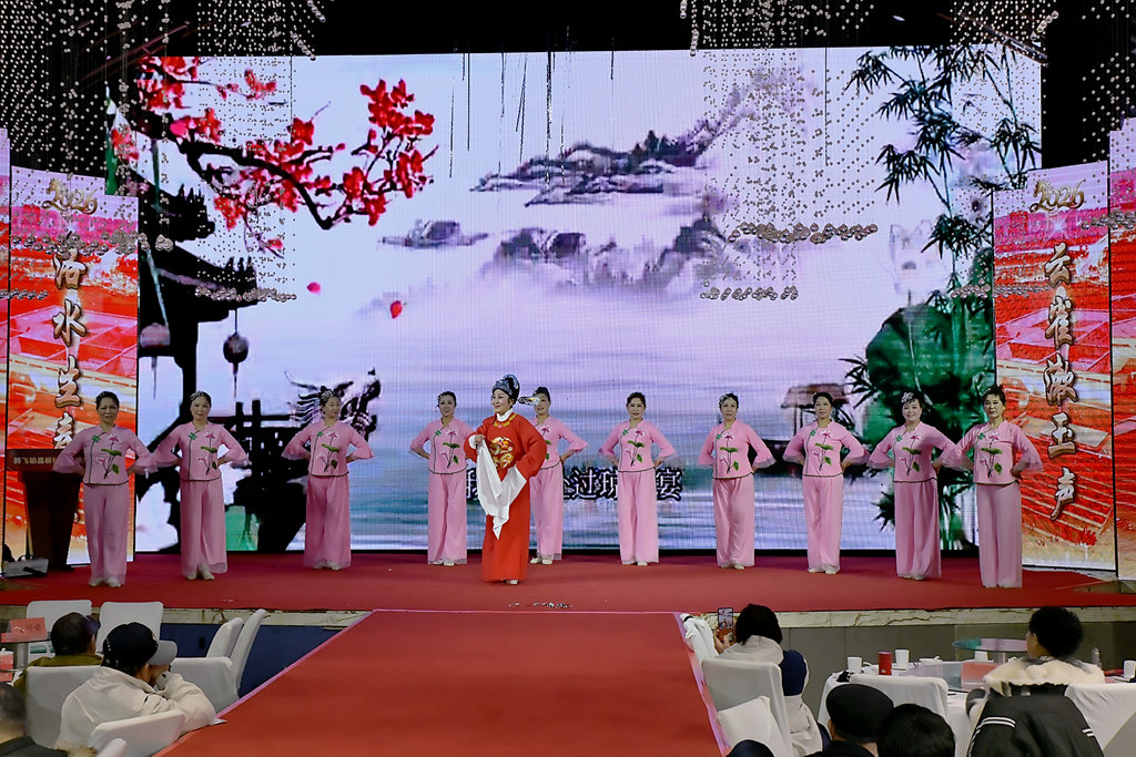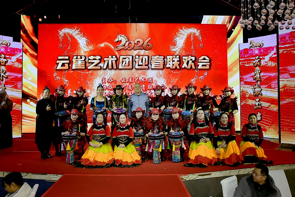 伴随着激昂的音乐,云雀艺术团舞蹈队的团员们身着华丽服饰,以优美的舞姿拉开了联欢会的序幕。