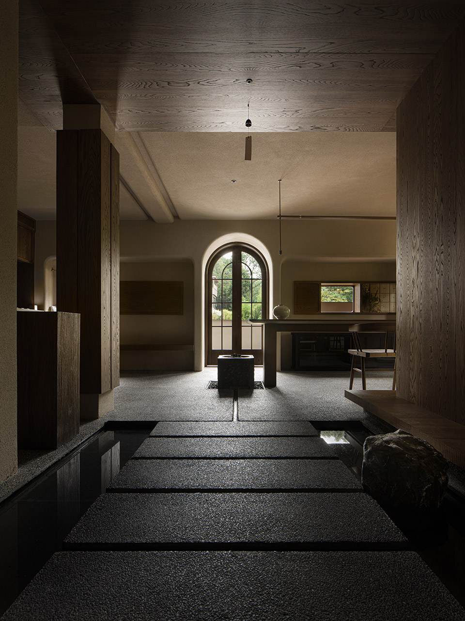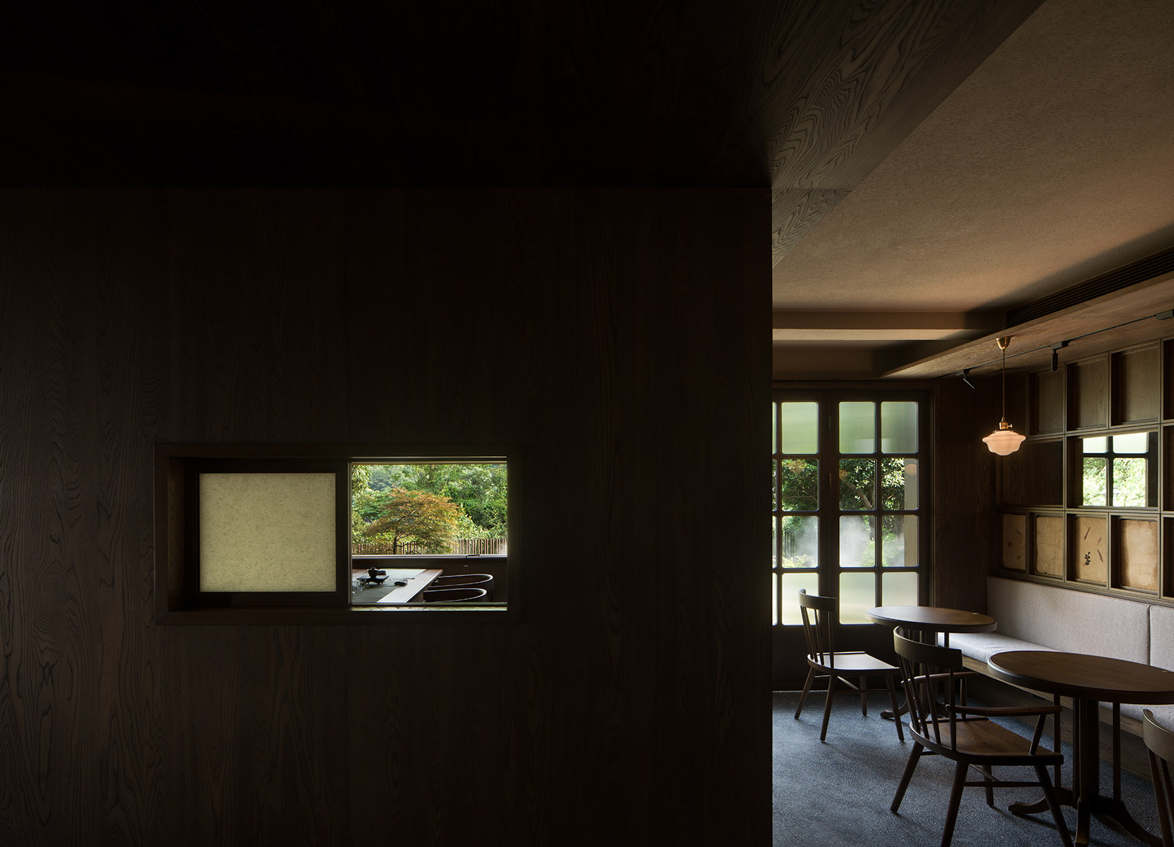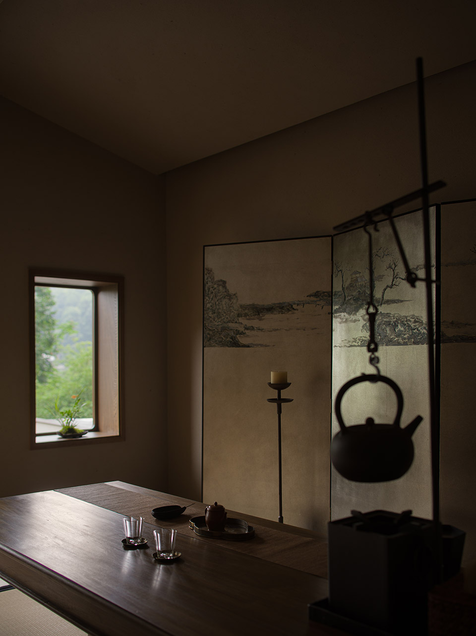 酒店客房设计延续整体松弛温暖的氛围,借自然纸艺材质柔化夏日阳光,既引光入室,又避其燥热。客房内,每一扇窗都是精心描绘的山水画,景观层次模拟墨色的“焦、浓、重、淡、清”,营造出窗外有画、画中有诗的深远意境。