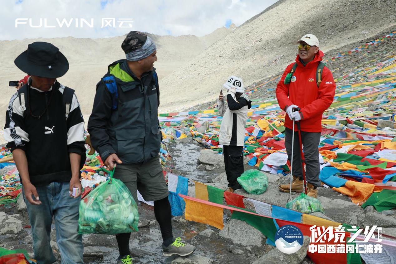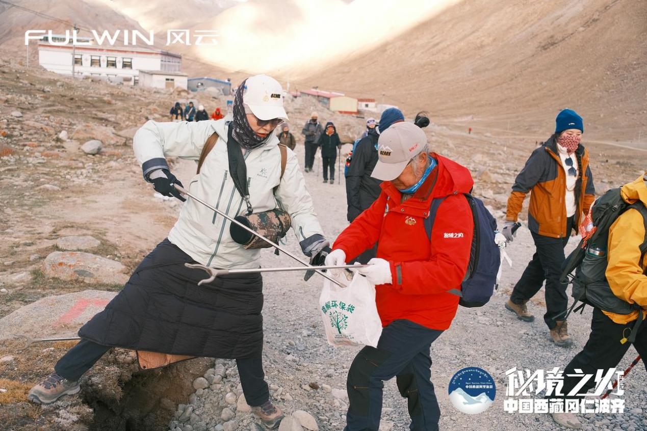 在冈仁波齐山脚下的第一天,将近15公里的平均4800米海拔的徒步山路,清理垃圾途中,由于环境海拔高对第一次参与本届环保公益行动的嘉宾和志愿者来说,是对身体素质和意志力的严峻挑战。当天晚上住宿休息的止热寺旅馆海拔5200米,条件艰苦,氧气稀薄,很多队员经受了极大的身心考验。第二天全体环保志愿者在乱石丛中艰难捡拾垃圾的精神感染了更多旅行者和朝圣们,他们也纷纷加入到了环保志愿者的队伍中来,一起捡拾清理垃圾,还有一些外国旅行者也向志愿者们竖起了大拇指表示赞赏,并主动向清洁垃圾的志愿者领取绿色环保垃圾袋,开始帮助捡拾塑料瓶等垃圾,这成为冈仁波齐转山路上的一道亮丽的风景。