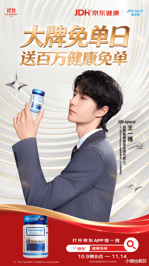 今年11.11,京东买药携手多位明星组成“健康天团”,从10月9日至11月14日,连续推出22个大牌免单日。每日一位明星送出知名健康品牌百万额度的免单福利。消费者进入对应品牌的官方自营旗舰店,即可享受秒杀、部分商品低至5折等优惠。下单该品牌商品后还可参与抽免单,中奖概率较平日更高。无论是热门滋补品、家庭常备药,还是智能健康设备,消费者只需锁定心仪品牌的专属免单日,就有机会被幸运选中免单。
