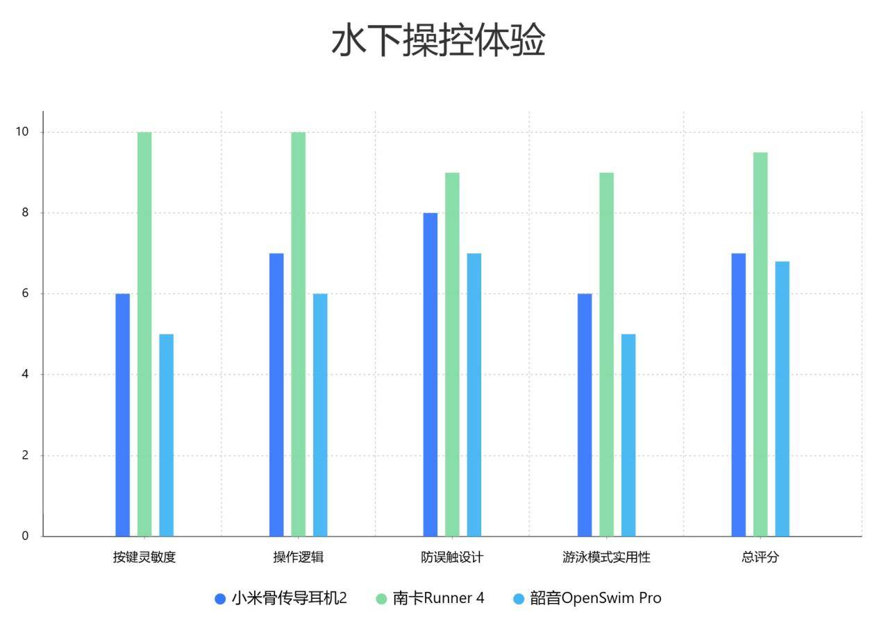 水下操控体验是游泳耳机使用中的关键环节。南卡Runner 4凭借灵敏快速的按键反馈和人性化设计,在湿滑环境下表现尤为突出;小米骨传导2游泳模式和颂拓算法虽有亮点,但操控响应略显迟缓,实用性一般;韶音OpenSwim Pro操控较为平庸,按键反馈有延迟。综合来看,注重水下操控体验的使用者,南卡Runner 4是更值得考虑的选择。