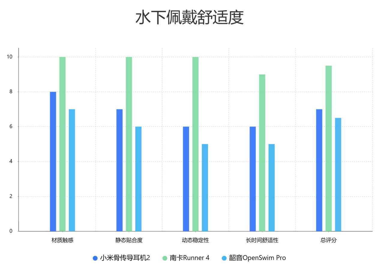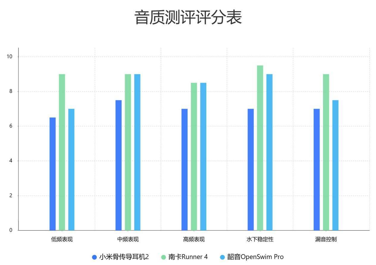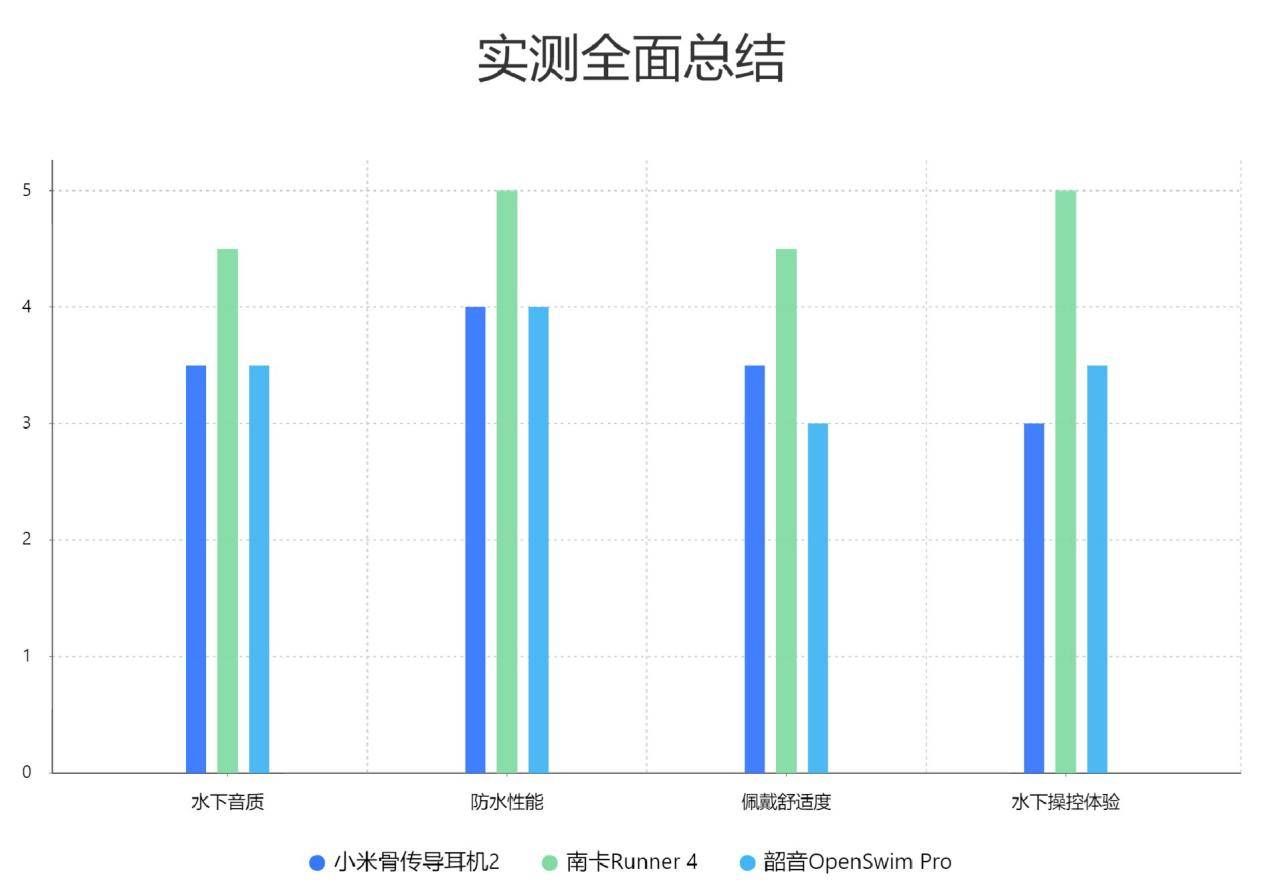 三款耳机在水下音质上的表现差异明显。南卡Runner 4凭借领先的技术和优化的声学方案,提供了更为饱满且稳定的水下音质体验,尤其适合对音质和使用体验有较高要求的泳者。小米骨传导2表现平实,适合预算有限且对音质要求不高的使用者。韶音OpenSwim Pro音质偏清亮,适合喜欢听清晰人声内容的使用者,但低频和沉浸感表现一般。大家可以根据自己的使用习惯和需求选择合适的产品。