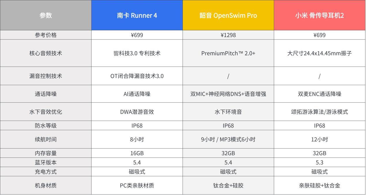 总体来看,预算相近的话,推荐优先考虑南卡Runner 4,兼顾性能和实用性,最值得入手。
