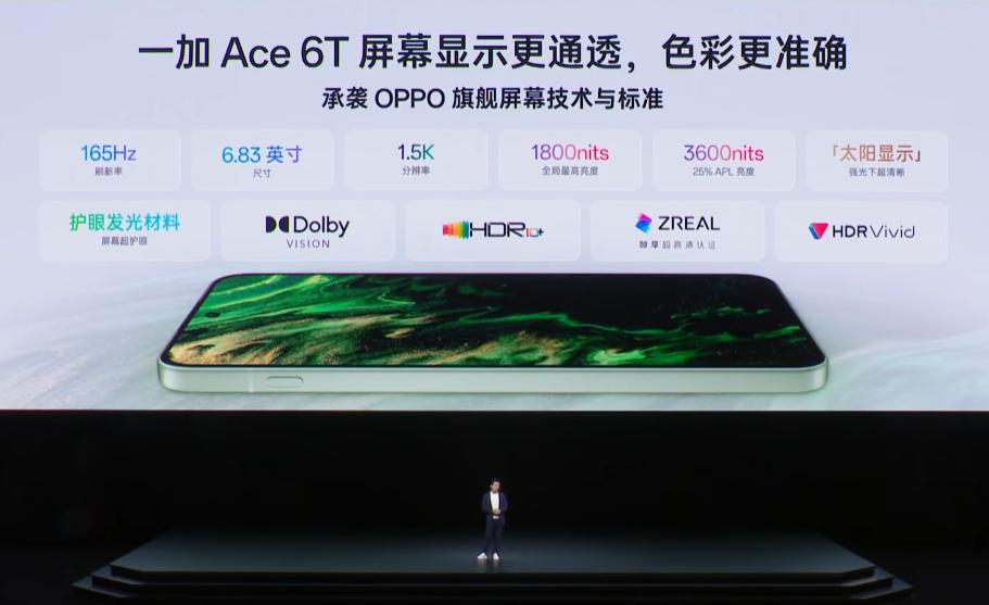 Ace 6T 正面采用了一块 6.83 英寸 1.5K 165Hz 直屏...