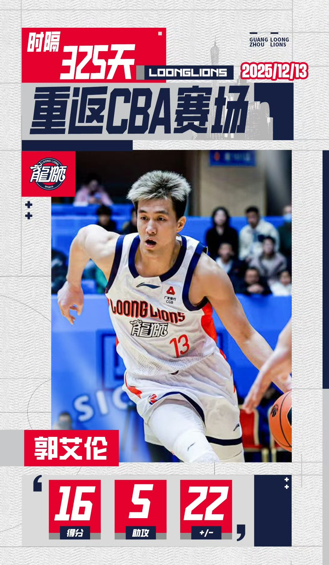 郭艾伦是在12月19日客场对阵广东男篮时受的伤,那场比赛龙狮男篮94:97只输了3分。从19日开始到现在,郭艾伦一场比赛也没有打过。