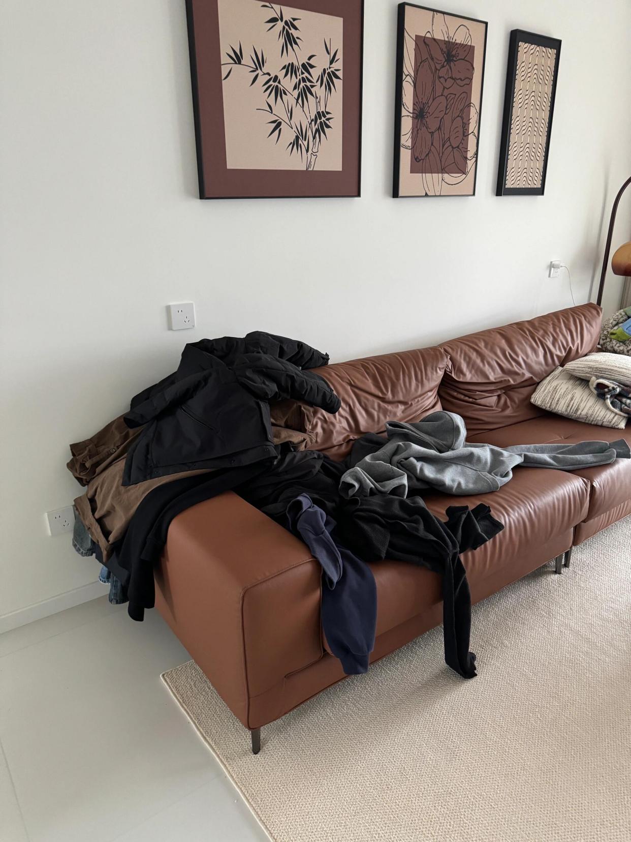穿一次不想洗的衣服,别乱堆沙发,椅子靠背或飘窗台上,尤其是季节交替时,这类衣服数量激增,使得家里特别乱。