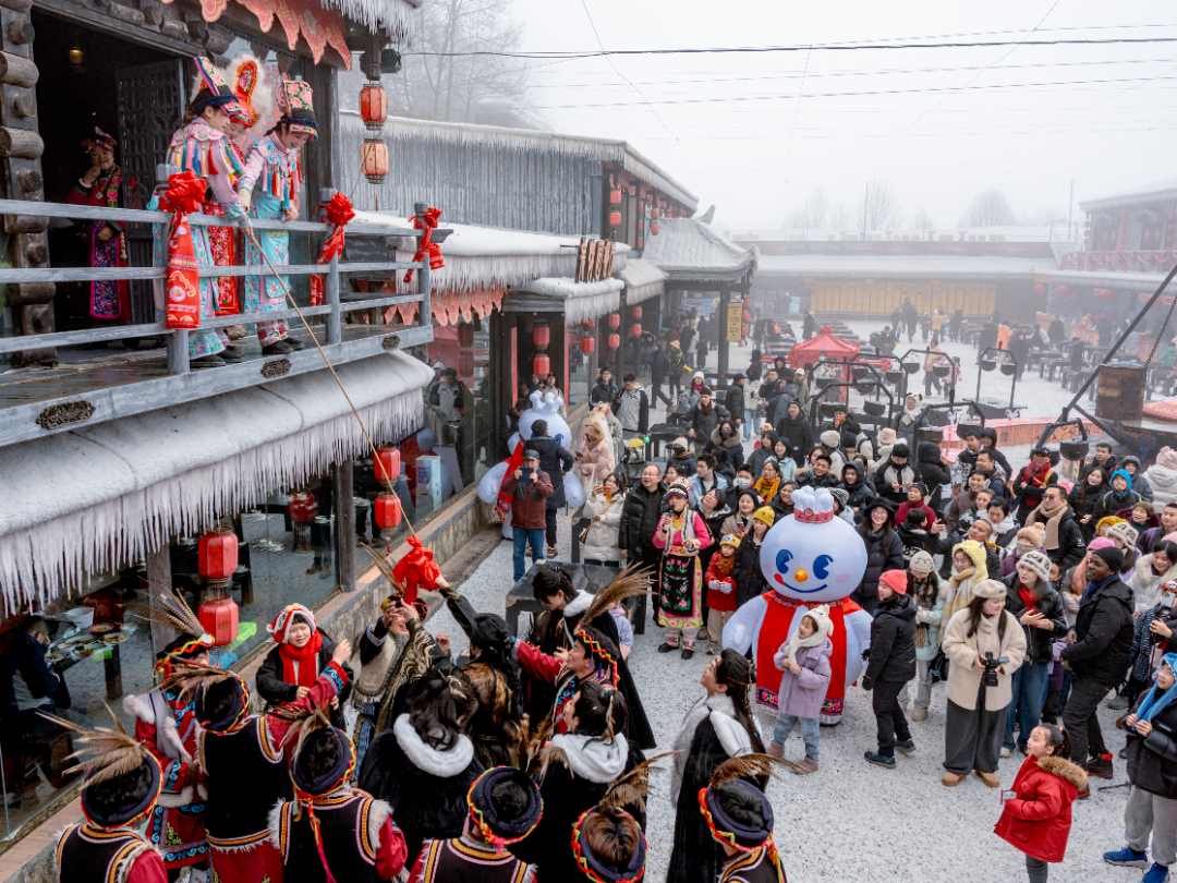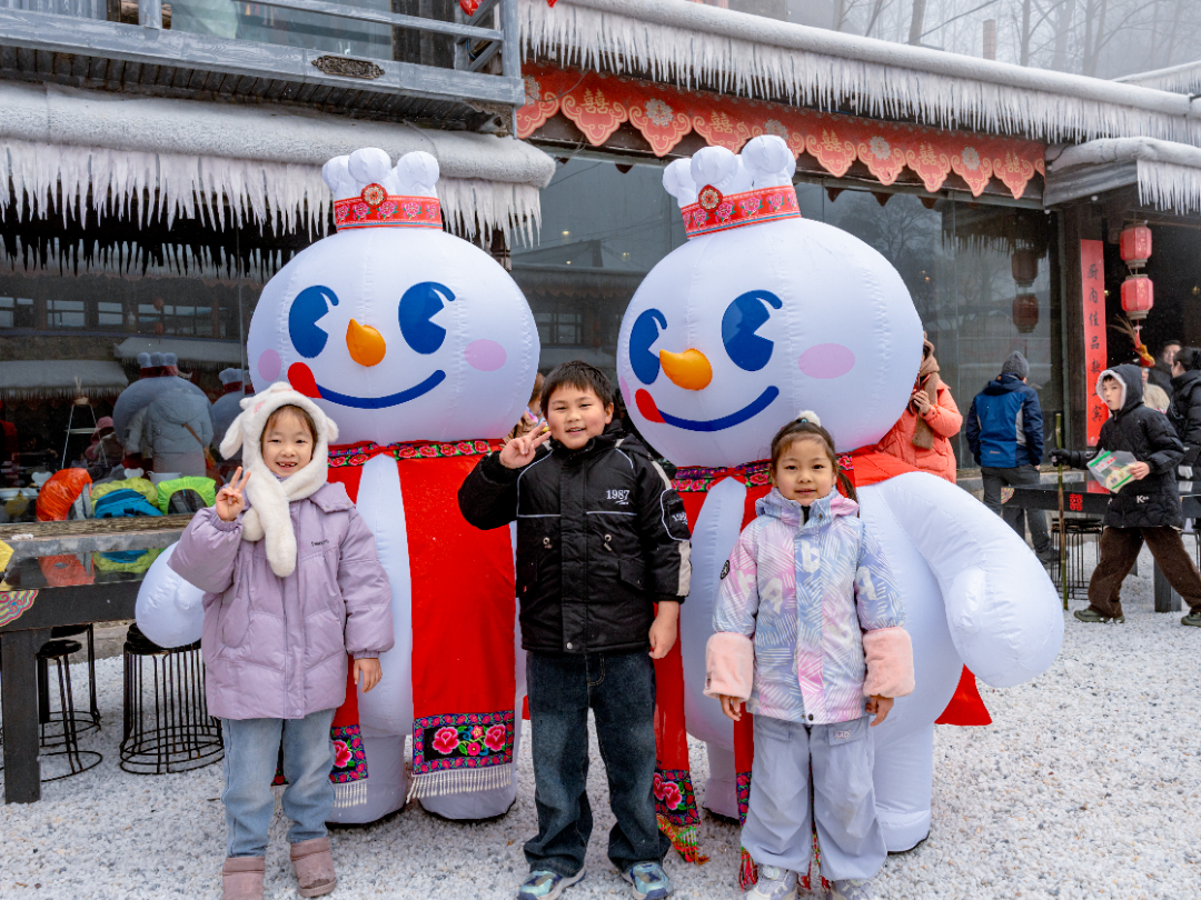 玩出新花样!本届冰雪季,九皇山携手蜜雪冰城、同程旅行开启深度联动,以“旅行+甜蜜体验”打造多元化游玩场景。元旦当天,身穿定制羌族服饰的“雪王”惊喜空降景区。这个平日里软萌的形象一经亮相,瞬间成为全场焦点,引得游客纷纷围观合影,“旅行+甜蜜”的跨界互动彻底点燃了现场氛围。