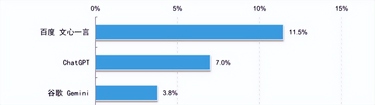由于具备先发优势,文心一言一度是中国AI市场的王者。中国互联网络信息中心披露的数据显示,截至2024年6月,中国生成式人工智能产品用户规模达2.3亿人,其中文心一言的使用率为11.5%,位列第一。