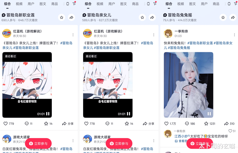 社交平台热度爆棚:千万话题刷屏全网谁还没被新职业莲圈粉?上线第一天就火遍全网,社交平台全是她的身影!抖音上 #冒险岛兔兔摇 #、# 冒险岛新职业莲 #、# 冒险岛亲女儿 #三大话题热度狂飙、停不下来~ 超酷的技能展示、脑洞大开的二创作品、实用满满的进阶攻略,各类短视频创意拉满,累计阅读量直接冲过千万 。