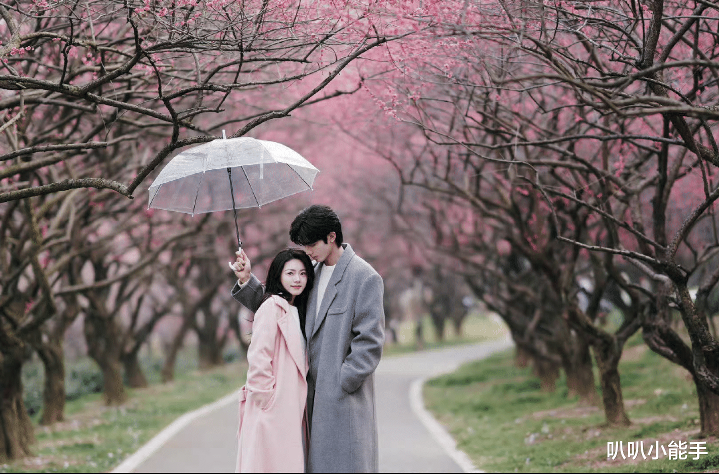 最绝的是不同场景的适配性,剧宣合照里,宋威龙眼神带点霸总范,赵今麦笑起来甜到掉牙,像“冰山撞上小太阳”;单人照里,宋威龙黑衬衫配红棕领带,手指戴戒指像“暗黑系贵公子”,赵今麦粉裙配长发,手托脸像“蜜桃味软糖”;外景更绝,俩人站在粉色花树下,宋威龙举透明伞,赵今麦往他怀里靠,灰大衣配粉大衣,像“冬日限定的浪漫CP”,这种“多风格都能扛”的颜值,比我换手机壁纸还要百搭!