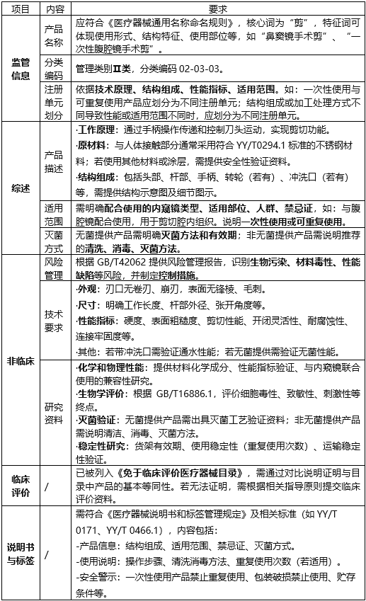 本期以内窥镜手术用剪为例,拆解国内二类医疗器械注册审查要求。