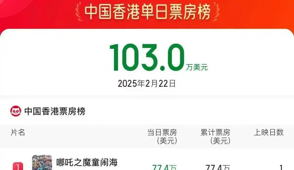 哪吒2横扫香港票房,美国队长4被打得满地找牙。这部国产动画片一上映就创造了多项纪录,连好莱坞大片都被甩在后面,简直不可思议。