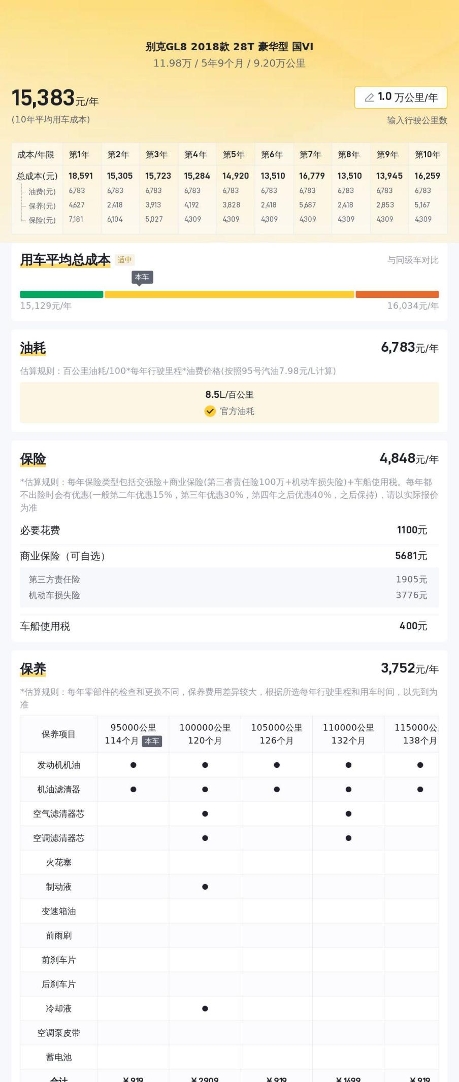 当然,购买二手车也存在一定的风险,例如后期维护保养成本可能会比新车更高。根据估算,这辆车的年均综合用车成本约1.5万元左右,这其中包括油费、保险、保养、维修等费用。当然,具体的用车成本会根据个人的用车习惯和路况而有所不同。